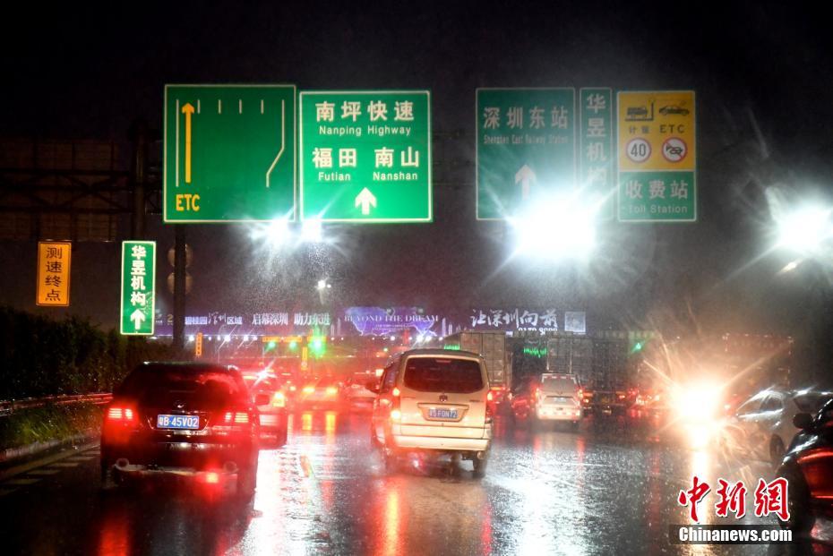 7月18日,深圳普降大暴雨局部特大暴雨,致部分路段嚴(yán)重積水、山體滑坡道路中斷、交通擁堵等險情。深圳鹽田區(qū)盤山公路恩上路段出現(xiàn)滑坡,無人員、車輛被困;深鹽二通道下沙頭角出口匝道中間因山水傾瀉,道路中斷,交警已經(jīng)實施了交通管制。當(dāng)?shù)貧庀蟛块T先后發(fā)布了雷電、暴雨黃色、暴雨橙色和暴雨紅色分區(qū)預(yù)警信號。圖為深圳南坪快速路段車輛行駛緩慢。中新社記者 陳文 攝