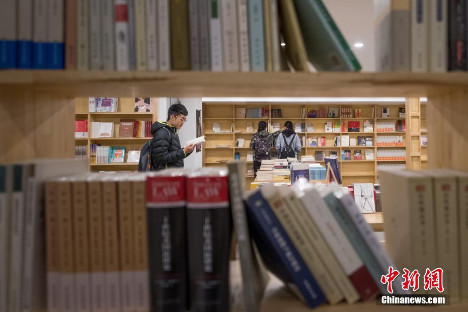 10月23日,山西太原,讀者在島上書(shū)店內(nèi)閱讀各類(lèi)圖書(shū)。該書(shū)店是由2016年從山西大學(xué)畢業(yè)的盧虹任創(chuàng)立,通過(guò)在校園內(nèi)眾籌的200萬(wàn)元人民幣,將一座地下車(chē)庫(kù)改建成24小時(shí)書(shū)店,為讀者提供優(yōu)雅閱讀環(huán)境的同時(shí),也圓了自己學(xué)生時(shí)代的“書(shū)店夢(mèng)”。 武俊杰 攝
