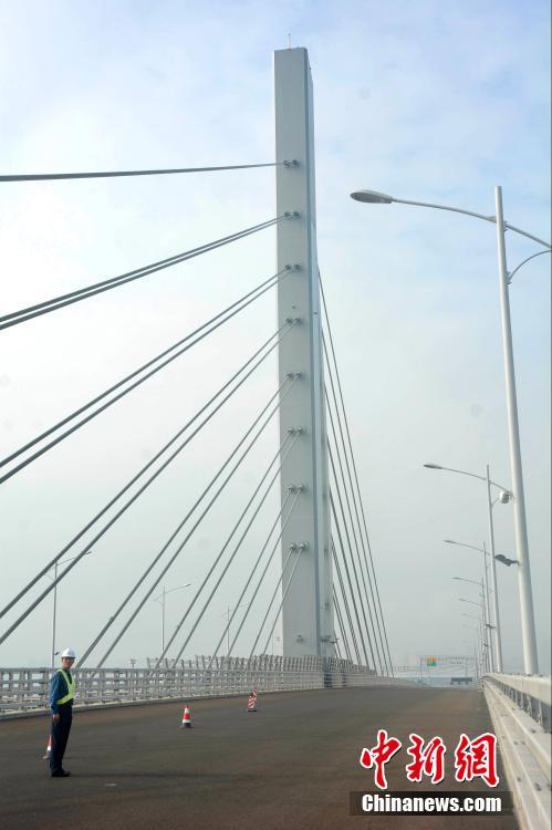 11月30日,港珠澳大橋橋面鋪裝工程已經(jīng)完成,其他收尾工作仍在進(jìn)行中,為大橋具備年底通車條件做準(zhǔn)備。據(jù)了解,港珠澳大橋主體工程近23公里的橋梁,首次在橋梁工程上部結(jié)構(gòu)大規(guī)模采用鋼結(jié)構(gòu),用鋼量達(dá)40多萬噸,足以建造60座埃菲爾鐵塔。 中新社記者 鄧媛雯 攝