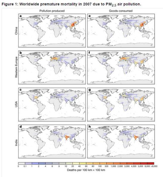 另外,環(huán)環(huán)(ID:huanqiu-com) 發(fā)現(xiàn)這篇研究中提到,中國(guó)在全球貿(mào)易中所受到的污染影響更為嚴(yán)重。其中,中國(guó)有超過(guò)10.86萬(wàn)人過(guò)早死亡與西歐、美國(guó)的消費(fèi)相關(guān)聯(lián)。