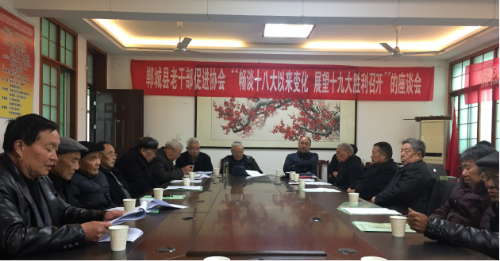 2017年,老干部促進(jìn)協(xié)會(huì)決定通過(guò)采取座談訪談、調(diào)研建言、網(wǎng)評(píng)熱議、參觀考察、家風(fēng)傳承、文藝創(chuàng)作、典型宣講、節(jié)慶活動(dòng)等形式,在全市廣大離退休干部中開(kāi)展“暢談十八大以來(lái)變化,展望十九大勝利召開(kāi)”的活動(dòng),積極推進(jìn)“不忘初心葆本色·中原出彩我點(diǎn)贊”活動(dòng)。鄲城縣老同志們?cè)谒枷胝谓ㄔO(shè)、輿論宣傳領(lǐng)導(dǎo)、優(yōu)良傳統(tǒng)傳承、社會(huì)風(fēng)氣凈化等方面積極發(fā)聲,積聚正能量、傳遞正能量,充分表達(dá)對(duì)堅(jiān)持黨的領(lǐng)導(dǎo)和走中國(guó)特色社會(huì)主義道路的堅(jiān)定信心,充分展示他們不忘革命初心、永葆政治本色的可貴品質(zhì),充分釋放他們對(duì)黨無(wú)限忠誠(chéng)的深厚感情,積極為黨的事業(yè)發(fā)展點(diǎn)贊加油,為十九大勝利召開(kāi)營(yíng)造良好氛圍。