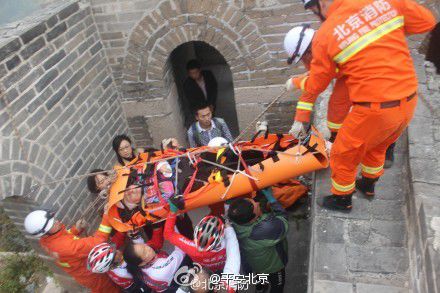 人民網(wǎng)北京10月21日電 據(jù)北京市公安局官方微博消息,昨日,北京消防接到報(bào)警稱一名游客被困野長(zhǎng)城,到達(dá)現(xiàn)場(chǎng)后發(fā)現(xiàn)被困者是一名60歲左右外籍女游客,因踩到碎石不慎摔傷,多處骨折,右肩脫臼并有輕微腦震蕩。消防官兵利用軀體固定氣囊,將被困者固定。經(jīng)1個(gè)小時(shí)艱難跋涉,終將被困者送到山下。
