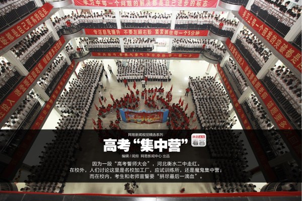 因為一段“高考誓師大會”,河北衡水二中走紅。在校外,人們討論這里是名校加工廠,應(yīng)試訓(xùn)練所,還是魔鬼集中營。而在校內(nèi),考生和老師宣誓要“拼盡最后一滴血”。編輯/聞烜