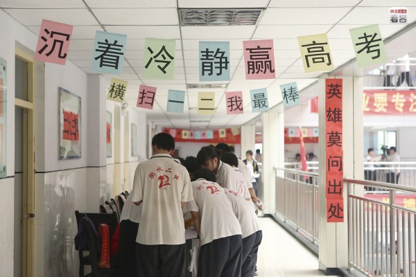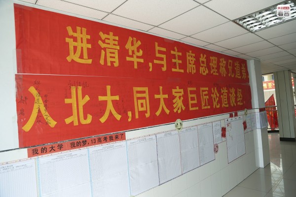 每當(dāng)空閑的時候,她便望向路對面校門口的展板上那張考上清華、北大學(xué)生與校長的大合影。她希望明年在這里也能看到女兒的身影。
