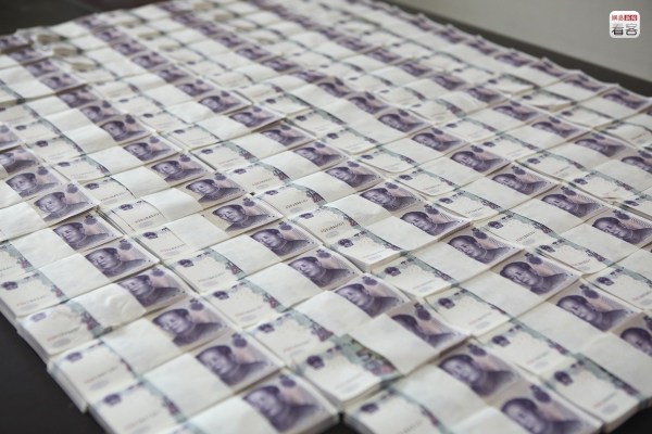 學(xué)校的另一項解壓措施是發(fā)放“回頭錢”,向每名學(xué)生發(fā)兩張五元紙幣,寓意“五谷豐登”、“十全十美”。圖為2012年6月3日,一位老師拿著一沓新紙幣準(zhǔn)備發(fā)給學(xué)生。