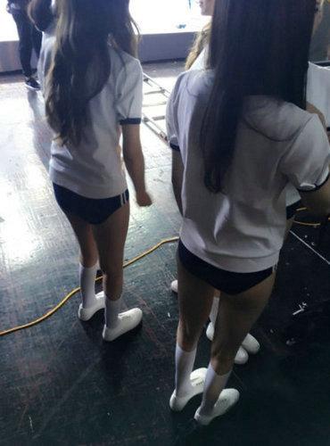 在目前曝光的錄制節(jié)目現(xiàn)場,有幾個姑娘穿著運動T恤,超短的短褲,白色的球鞋,秀出了修長的大美腿,一個個身材窈窕,并且這幾個疑似參加選拔的姑娘看起來顏值還相當不錯哦。