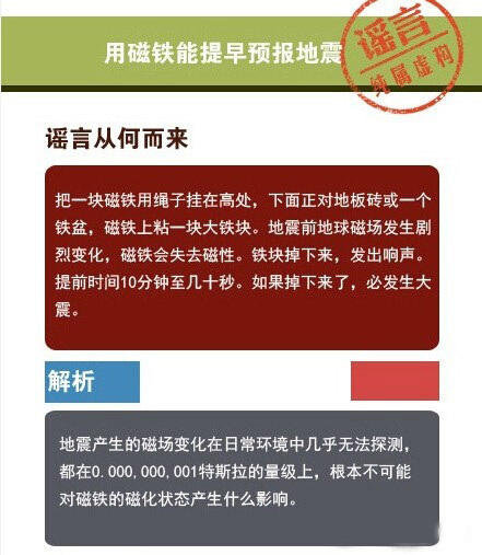 動(dòng)物、磁鐵可以預(yù)報(bào)地震、地震生命金三角可救命、土豆促進(jìn)身體康復(fù)、淋涼水可以復(fù)活假死人……這些曾經(jīng)轉(zhuǎn)發(fā)過萬的“常識(shí)”都是謠言!