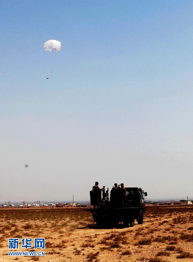 某型測(cè)繪無(wú)人機(jī)返回地面時(shí),自動(dòng)打開降落傘,空降到指定地域(4月16日攝)。新華社發(fā)(黃寶峰 攝)