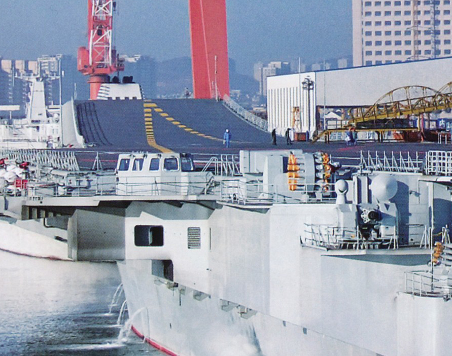 正在大連改裝的瓦良格號又有新圖片放出。從艦尾拍攝的圖片非常少見,從圖片上可以看出瓦良格號甲板上工作人員還在忙碌進行改裝工作。(鼎盛軍事海帆供圖)