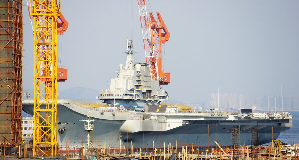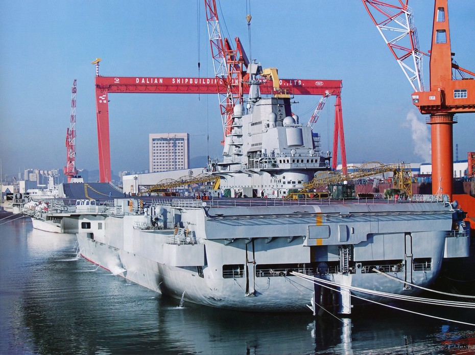 中國航母瓦良格號目前正在大連準備第5次和第6次試航,圖為試航回航時的現(xiàn)場。