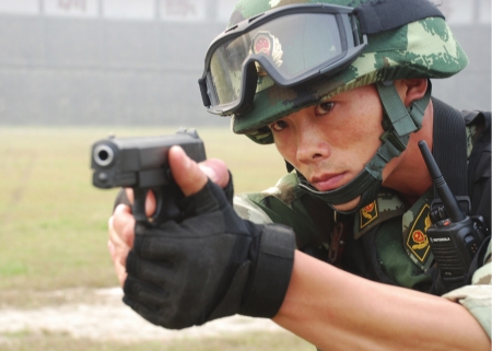 站在記者面前的王永法個(gè)頭中等、皮膚黝黑、體魄健壯。這位來自河南的80后老兵,乍一看和普通一兵并無不同。但他身上卻籠罩著一道道光環(huán):囊括了武警四川總隊(duì)近兩年所有軍事比武的冠軍,5次被評為“軍事訓(xùn)練標(biāo)兵”,榮立二等功1次,三等功4次,榮獲武警部隊(duì)“勇士勛章”,最近作為西南反劫機(jī)作戰(zhàn)隊(duì)的代表人物,被確定為第十五屆中國武警十大忠誠衛(wèi)士候選人……在武警四川總隊(duì)一支隊(duì),他是人人皆知的“瘋子”。
