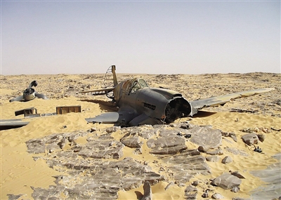 停留在撒哈拉沙漠中的P-40小鷹式戰(zhàn)斗機(jī),隸屬于英國皇家空軍,于1942年二戰(zhàn)期間迫降