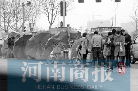 為遮擋大風(fēng),路邊小吃攤的大傘都迎風(fēng)放著。河南商報(bào)記者 鄧萬里/攝