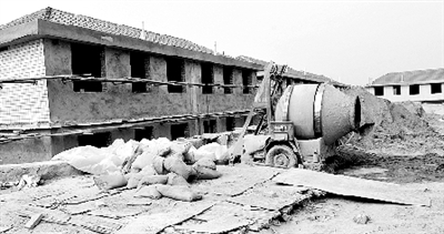 在泰山村村西邊看到大面積在建別墅已經(jīng)停工,一個農(nóng)民工說,這兒是“龍騰盛世”四期。關于停工,該農(nóng)民工說:“停幾天還會再開工的,村支書能量大著呢。”