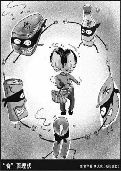 “早上喝一杯三聚氰胺牛奶,吃兩個(gè)染色饅頭,夾一截瘦肉精火腿,切一個(gè)蘇丹紅咸蛋;到中午了,買一條用避孕藥喂的魚……”這是網(wǎng)上流行的一個(gè)段子,雖然有些夸張,但也表現(xiàn)出網(wǎng)友對食品安全的憂慮。