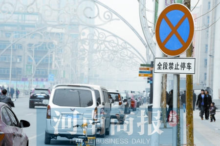 鄭州人和路的“全段禁停”標(biāo)志下停了幾十輛車(chē)