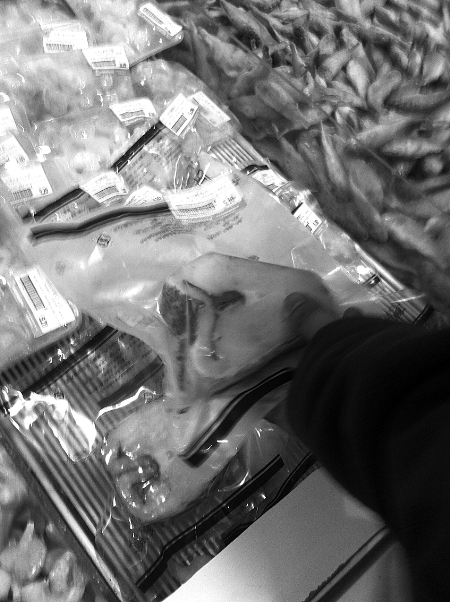 昨天下午,在鄭州市經(jīng)三路華潤(rùn)萬(wàn)家超市生鮮區(qū),散裝的大塊鱈魚(yú)疊放在冰柜內(nèi),以切片形式出售,標(biāo)價(jià)為15.9元/500g。這種標(biāo)簽為“凍鱈魚(yú)”的水產(chǎn)品橫切面肉質(zhì)雪白肥厚,中間一根孔狀主刺,旁邊一些細(xì)刺隱約可見(jiàn),魚(yú)塊表面魚(yú)鱗呈淡黑色緊密細(xì)格。售貨員稱(chēng)并不知道這些鱈魚(yú)的產(chǎn)地,但這種鱈魚(yú)口感好肉質(zhì)好,每個(gè)月進(jìn)貨一次?!镑L魚(yú)是深海魚(yú),比普通魚(yú)貴一點(diǎn),不過(guò)買(mǎi)的人一直都很多?!?/p>