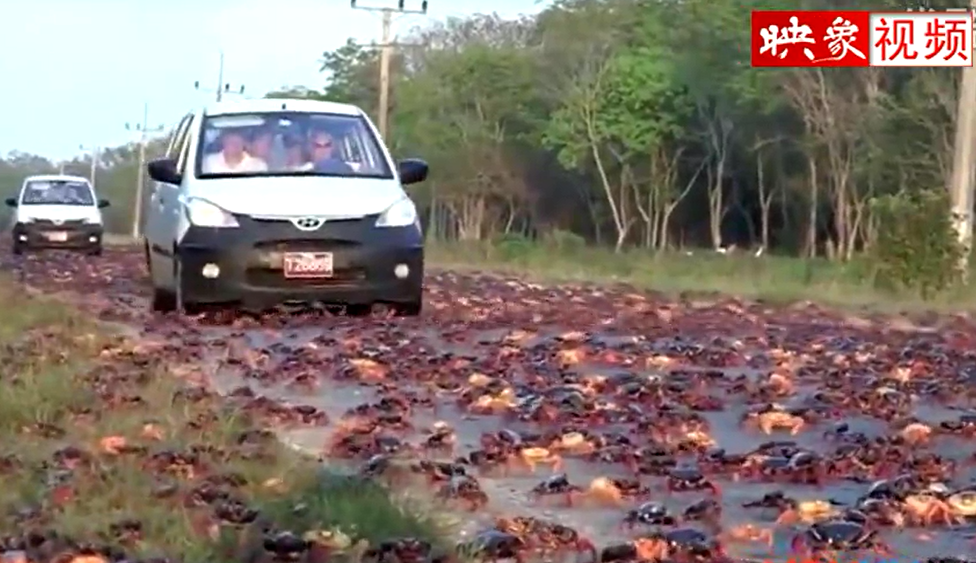 實(shí)拍百萬螃蟹大遷徙 汽車軋上咔咔響