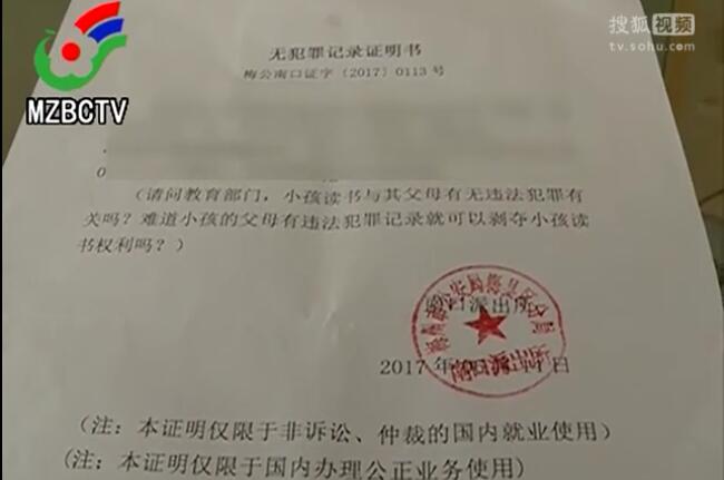 小孩入學(xué)需家長(zhǎng)無(wú)罪證明 派出所霸氣懟回