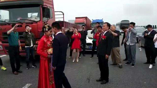 高速上結婚誰見過?新郎接親遇堵車 高速現(xiàn)場拜天地