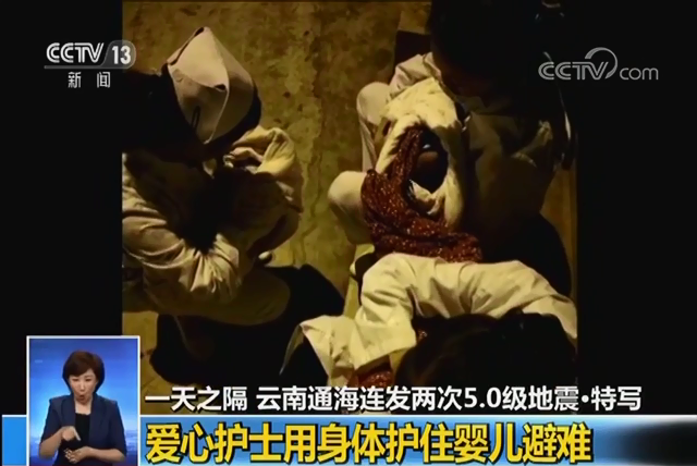 一天之隔 云南通海連發(fā)兩次5.0級(jí)地震·特寫 愛(ài)心護(hù)士用身體護(hù)住嬰兒避難