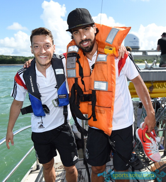 北京時間6月11日,世界杯臨近,德國隊近日與瑞士冒險家霍恩一起揚帆起航,出海游玩,讓隊員們在大賽前充分放松。厄齊爾和拉姆等人在船上玩的不亦樂乎。