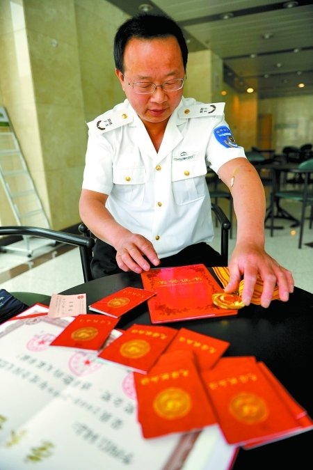 雖說他熱衷于為大河報提供新聞線索,但提起自己的獻血經(jīng)歷卻不想多說。在記者的反復詢問下,李四信說,他于2002年1月開始第一次獻血。當時,他與朋友在二七廣場附近游玩時看到一輛采血車,出于好奇就去獻了400毫升全血,因為是好事,獻過后自己很開心。從那以后,自己對獻血便“上了癮”,剛開始按獻全血的規(guī)定,每隔半年獻一次,一次400毫升;后感覺獻全血隔的時間有點長,就開始獻成分血,一個月就可以獻一次。其間,他獲得過鄭州市紅十字會、中國紅十字會總會等多個部門頒發(fā)的獻血榮譽證書。