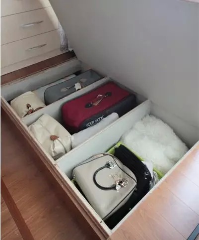 裝飾亮點:地臺的空間作為儲物利用,可以為冬季外套、棉被、行李箱等比較占空間又較長時間不需取用的物品找到穩(wěn)妥的收納位置,且密封性較好。