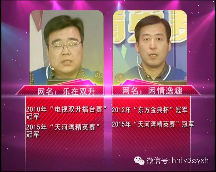 “樂在雙升”和“閑情逸趣”是一對老搭檔,城市對抗賽冠軍開封隊主力隊員,兩人搭檔曾獲得2015年天河灣精英賽冠軍?!伴e情逸趣”曾獲得2012年東方金典杯冠軍,“樂在雙升”曾獲得2010年電視雙升擂臺賽冠軍。