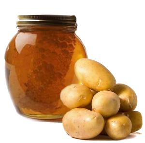 做法:先將土豆用榨汁機(jī)榨出汁液,再把土豆汁放入鍋中煎熬至粘稠,然后放入一倍于土豆汁的蜂蜜,再煎熬至粘稠,?;?,待冷,裝瓶備用。