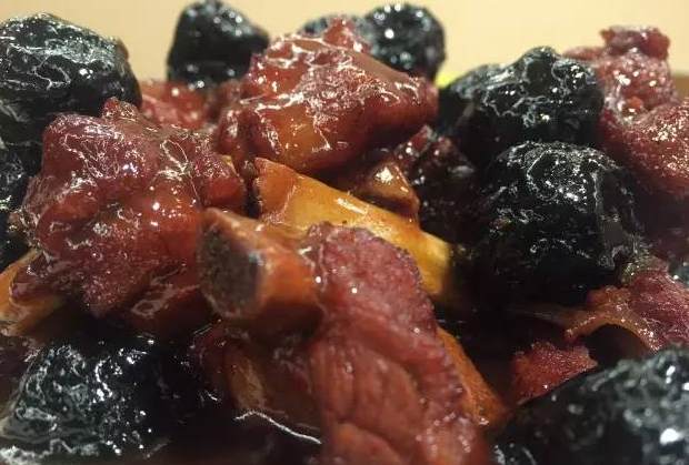 4、用油將姜片,蔥,八角,花椒,小茴香和香葉炒香,烹入料酒,加水,加海鮮醬,雞精,白糖,冰糖,南乳汁和生抽調(diào)味,再倒入排骨,小火燉制10分鐘,加入白醋和陳醋,手汁后倒入烏梅即可。