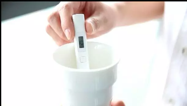 用小米水質檢測筆,這里水質顯示的數(shù)值和礦泉水的數(shù)值略有差別,證明了酒店的用水是健康的。