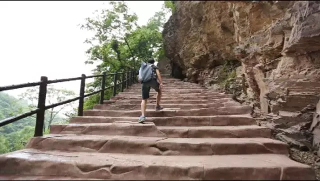 瀑布高達(dá)100余米,從井口水簾洞落下,形成了自然奇觀,漫步在棧道之上,便有穿云破霧之感。在這里,遠(yuǎn)望可領(lǐng)略高山整體氣勢(shì)之壯美,近觀可品察,山石樹(shù)木形色質(zhì)紋之奇秀。