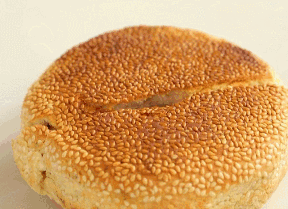 登封本地人最愛的就是焦蓋燒餅,正宗的焦蓋燒餅表面撒滿芝麻,外面焦黃酥脆內層松軟,一半死面一半發(fā)面和成面團下成劑子,蘸上油鹽五香粉等調料后包制成餅,壓制成型后再經過刷水蘸芝麻,餅的雛形就呈現出來了。