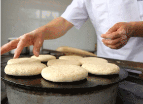 別看這燒餅配料簡單,要想做的好吃全憑手上功夫,在滾燙的鏊子上烙至兩面微黃,再放入爐中烤制十幾分鐘,要想做出的燒餅蓋焦內軟,不僅要選用傳統的無煙炭火,還要精準地把控火候。
