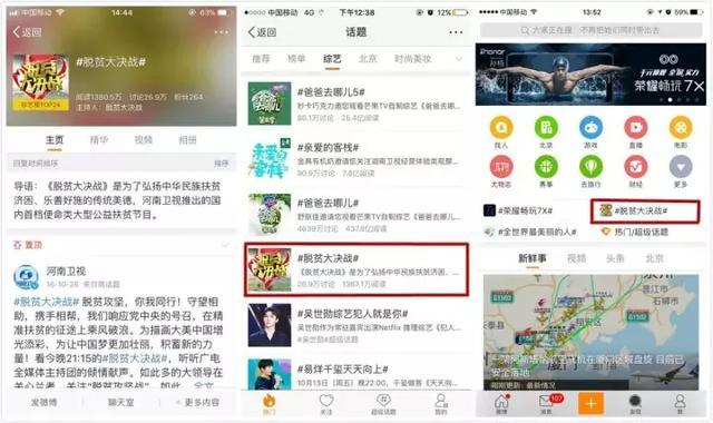 節(jié)目播出至今,“脫貧大決戰(zhàn)”早已在網(wǎng)絡(luò)社交平臺上引起了網(wǎng)友熱議。人民網(wǎng)、光明網(wǎng)、央視網(wǎng)、中國網(wǎng)、環(huán)球網(wǎng)、騰訊、新浪、網(wǎng)易、今日頭條、百度等數(shù)百家媒體進(jìn)行轉(zhuǎn)載,新浪微博、微信公眾號等大量自媒體號廣泛傳播。統(tǒng)計顯示,截至11月30日,《脫貧大決戰(zhàn)》在新浪微博話題綜合榜上排名第七,全國綜藝榜排名第二,新浪微博閱讀量達(dá)到了7990萬。