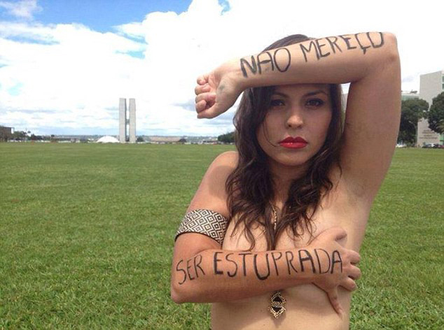 此前巴西國(guó)家應(yīng)用經(jīng)濟(jì)研究所的一項(xiàng)調(diào)查顯示,約有65.1%的巴西人在某種程度上認(rèn)為,女性穿著暴露就可以被侵犯,而被訪者中竟然超過(guò)一半都同為女性。由此,巴西的女性便通過(guò)發(fā)自己的裸照,以此來(lái)抗議并改變巴西人的偏見(jiàn)。此外,該研究所還公布,巴西強(qiáng)奸案的受害者約占人口的0.26%,其中有50.7%的年齡都不到13歲。